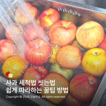 사과 껍질에는 농약과 왁스가 남아있을 수 있어 제대로 씻지 않으면 오히려 해로울 수 있습니다. 베이킹소다 1큰술을 물 1리터에 풀어 5분간 담가두고, 부드러운 솔로 문질러 씻으면 99% 깨끗해집니다. 마지막에 찬물로 2-3번 헹구면 완벽합니다.