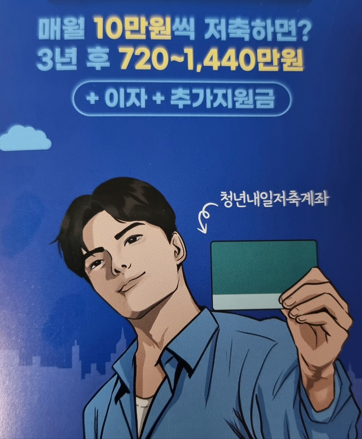 소득이 적다고, 청년이라고, 자산 형성이 어렵다고 포기하지 마세요. 정부는 의지가 있는 청년의 자립을 적극 응원합니다. 여러분의 3년 후를 바꿀 수 있는 지금, 청년내일저축계좌로 그 첫걸음을 내딛어 보세요.