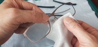 기름기와 지문 제거에는 중성 주방세제가 가장 효과적입니다. 소량을 손끝에 묻혀 안경 전체를 부드럽게 문질러 주세요. - 미지근한 물로 헹굼