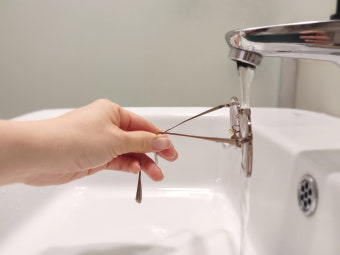 안경 표면에 붙은 먼지를 물로 먼저 씻어내야 합니다. 이 과정을 생략하면 렌즈에 미세한 흠집이 생길 수 있습니다. - 주방세제 소량 사용