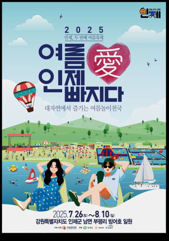 | 인제 | 여름愛 인제愛 빠지다 | 7.26 ~ 8.10 | 빙어호 일원 | 인제군청 관광과 또는 축제 공식 홈페이지 검색 추천 |