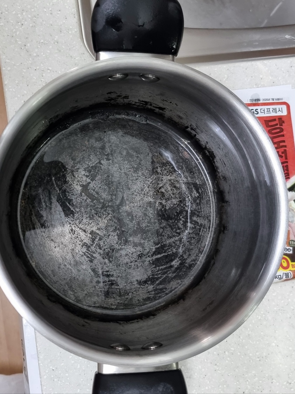 숯덩이처럼 까맣게 탄 스테인리스 냄비 반짝반짝