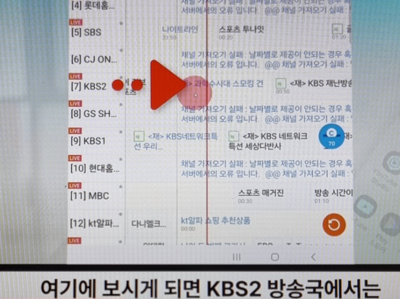 TV 의달인 이라는 앱이 있습니다. Google Play 스토어에서 다운로드하여서 설치하시고 사용할 수 있습니다. 이 앱을 실행하면 그날 다양한 기능을 볼 수 있습니다 방송사의 방송 일정을 확인할 수 있습니다. 이 경우 홈쇼핑을 포함한 지상파 방송하나의 앱에서 다른 모든 방송을 확인할 수 있습니다. 이 앱은 자체적으로 볼 수 없습니다. 링크를 통해 방송사에 연결됩니다. 그러면 지금 방송 중인 콘텐츠를 확인할 수 있습니다. 아래 사진을 보면 KBS2가 과학수사대의 스모킹 건임을 알 수 있고 확인할 수 있습니다. SBS에 가면 현재 방영 중인 프로그램을 보고 실시간 TV를 시청할 수 있습니다 클릭하면 어떤 방송을 시청할지 선택하는 것이 좋습니다.