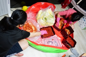 - 무·쪽파·갓 등의 부재료 조직감 살리며 연동 버무림 실시