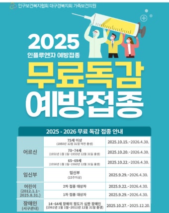 - 어린이·임신부·성인 1회 접종: 2025년 9월 29일~2026년 4월 30일
