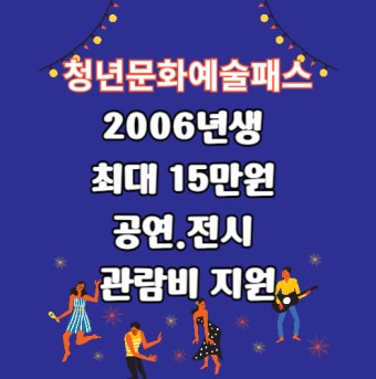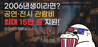 **청년 문화예술패스**는 대한민국 19세 청년(2006년생)에게 연간 최대 15만원의 공연·전시 관람비를 지원하는 정부 정책입니다. 공연, 뮤지컬, 클래식, 콘서트, 미술 전시 등 다양한 문화예술을 경험할 수 있도록 돕는 대표적인 청년 문화지원 사업입니다.