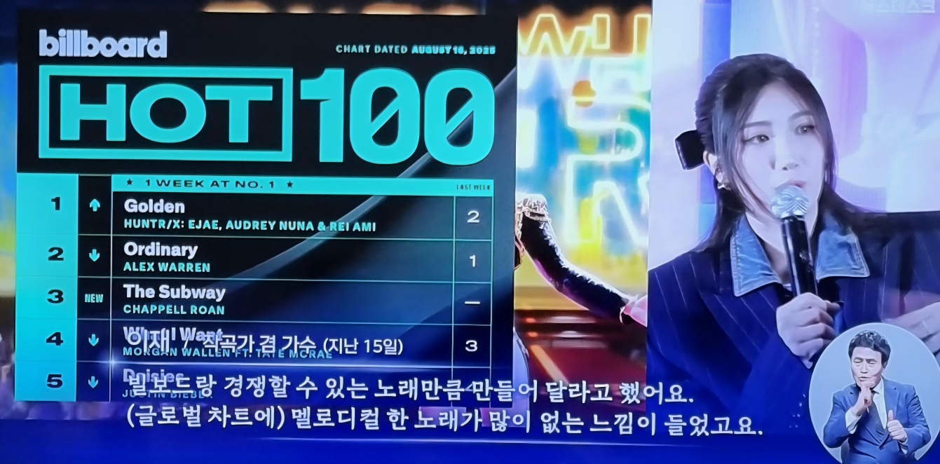 2025년 넷플릭스 애니메이션 K 데몬 헌터스는 K팝 걸그룹 헌트릭스(HUNTR/X)가 음악으로 세상을 구하는 판타지 액션입니다. OST ‘Golden’을 작곡·가창한 이제는 주인공 루미의 목소리도 직접 연기했습니다. 그 결과, 곡은 빌보드 핫100과 200 차트 동시 1위를 기록하며 세계적인 센세이션을 일으켰습니다.