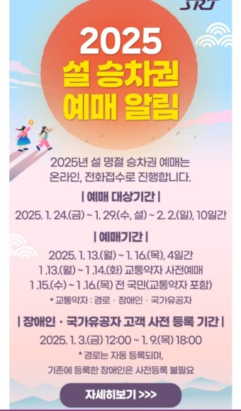 이번 설 연휴를 맞아 SRT를 이용하시는 모든 분들께 보다 유익한 정보가 되기를 바라며, 안전하고 기분 좋은 여행이 되시길 기원합니다.